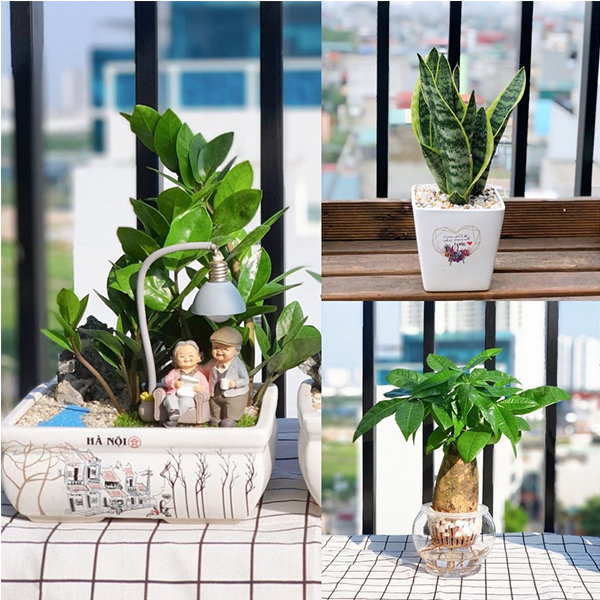 Các loại cây cảnh mini ưa khô có đặc điểm chung là sức sống khỏe mạnh, có thể phát triển tốt khi nhiệt độ và ánh sáng thay đổi. Một số mẫu cây phổ biến của dòng ưa khô là Lưỡi Hổ, Kim Tiền, Kim Ngân. Chăm sóc các mẫu cây này cực đơn giản, lịch tưới 7-10 ngày/ lần.