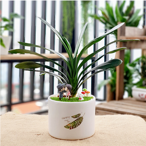 Tiểu cảnh Lan Quân Tử kích thước chậu đường kính 19cm, chiều cao khoảng 35cm.