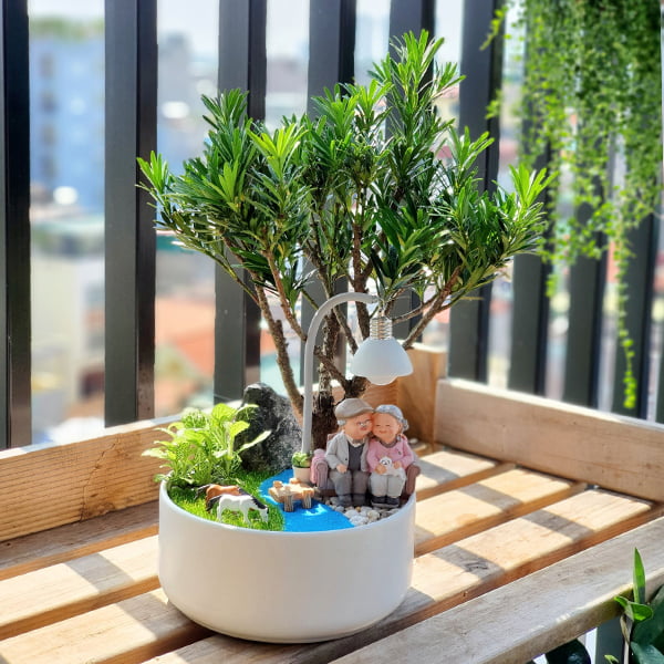 Trồng đơn Tùng La Hán hay sáng tạo thành các mẫu tiểu cảnh Tùng La Hán và đặt trong phòng khách hay bàn làm việc sẽ giúp không gian trở nên sang trọng và tinh tế hơn.