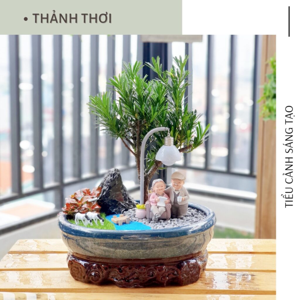 Với tiểu cảnh Tùng La Hán “Thảnh Thơi”, bạn chăm sóc cây như sau: