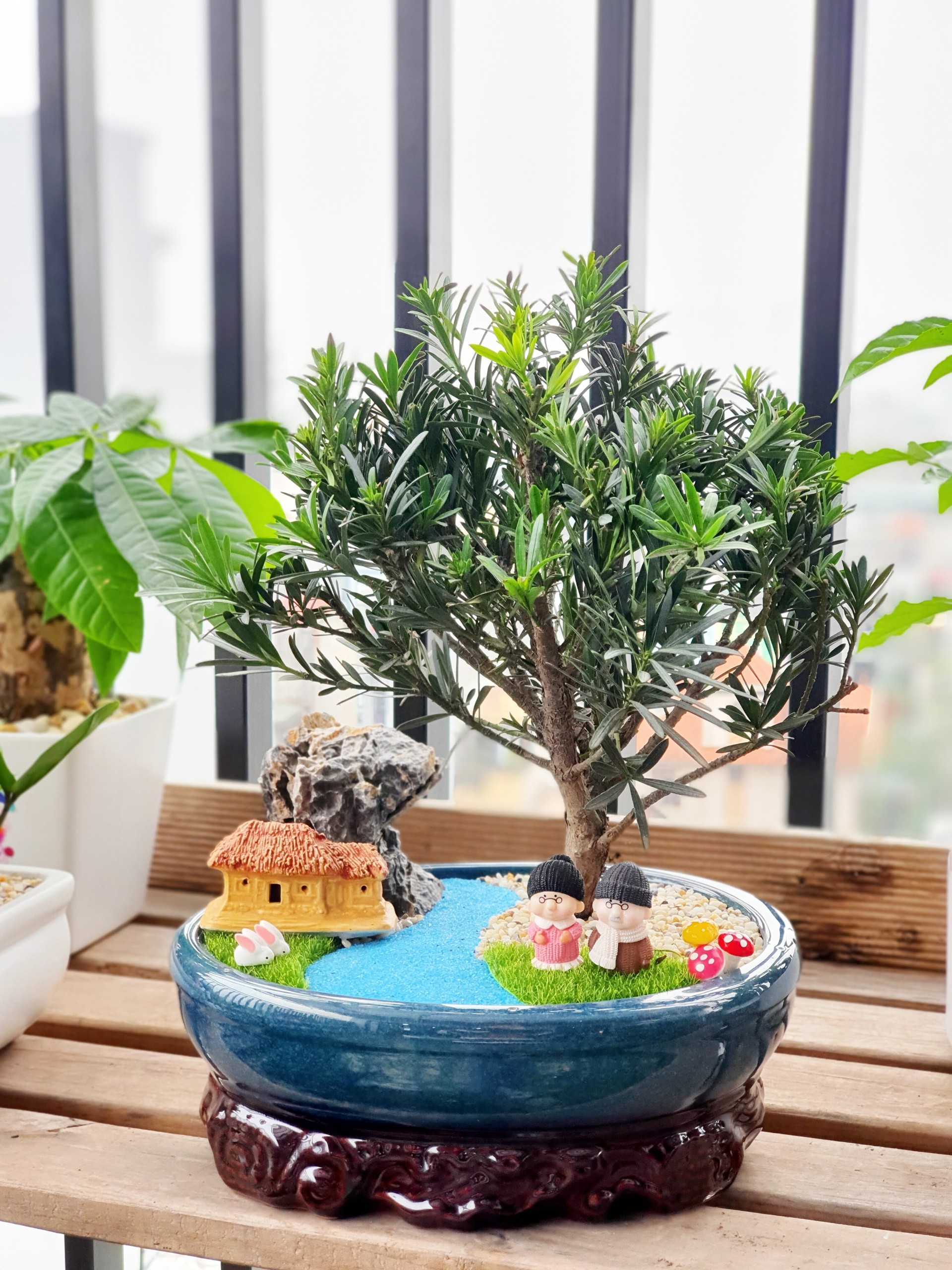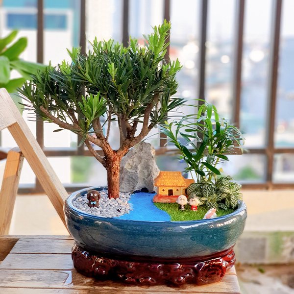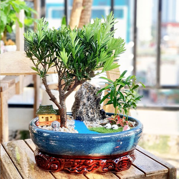 Trồng đơn Tùng La Hán hay sáng tạo thành các mẫu tiểu cảnh Tùng La Hán và đặt trong phòng khách hay bàn làm việc sẽ giúp không gian trở nên sang trọng và tinh tế hơn.